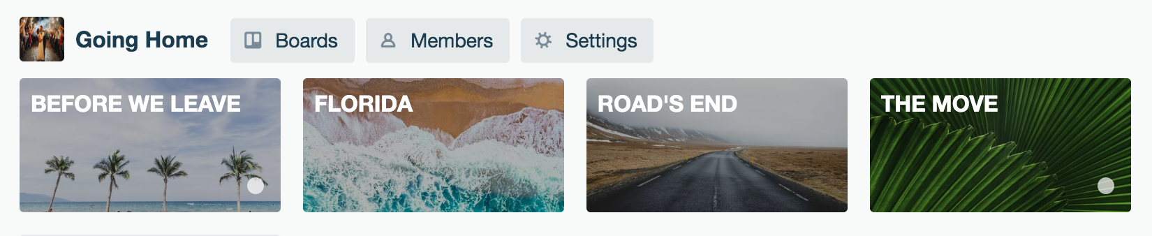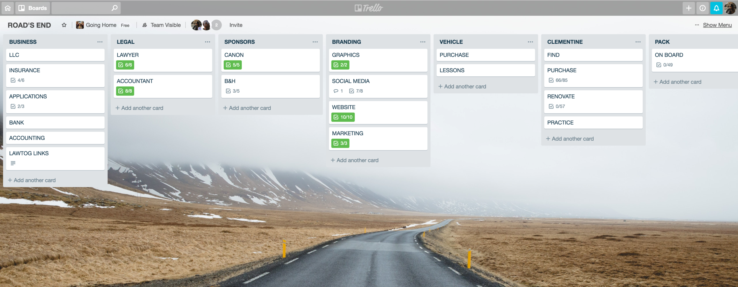 NOTE: We use the FREE account, and it has everything we need. We can share up to 10 boards with our designated “team” - aka Going Home - aka Corey and myself. There are unlimited cards available with the free account as well.
